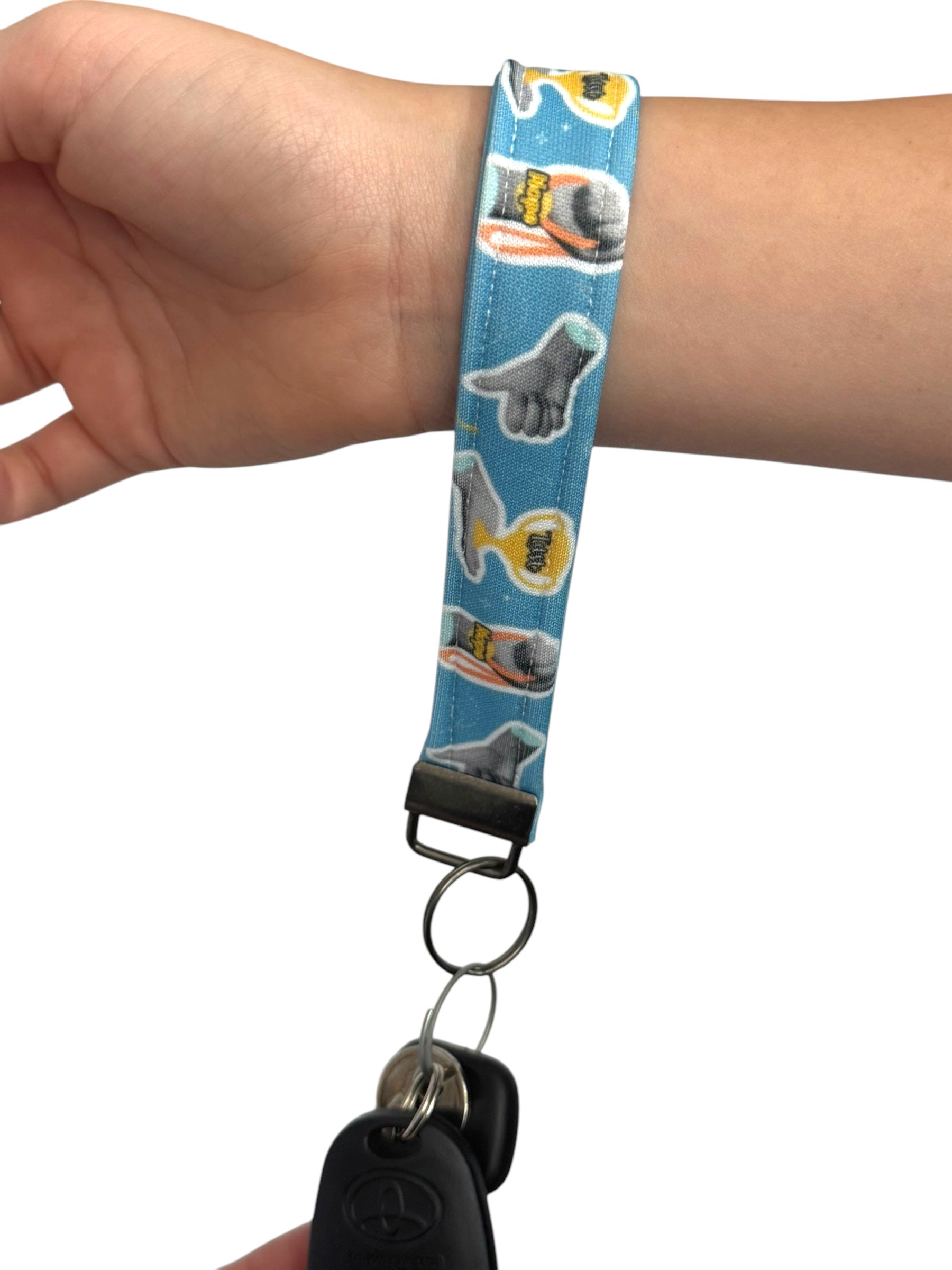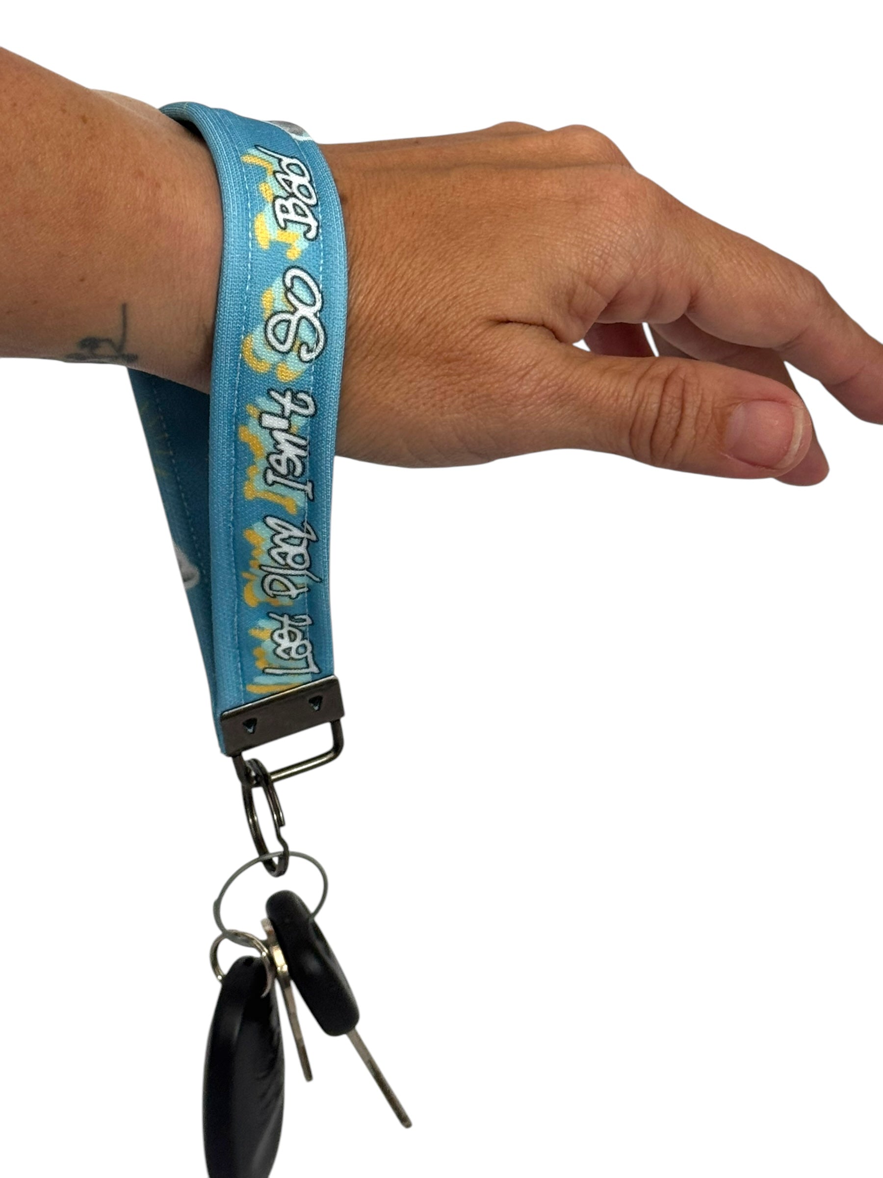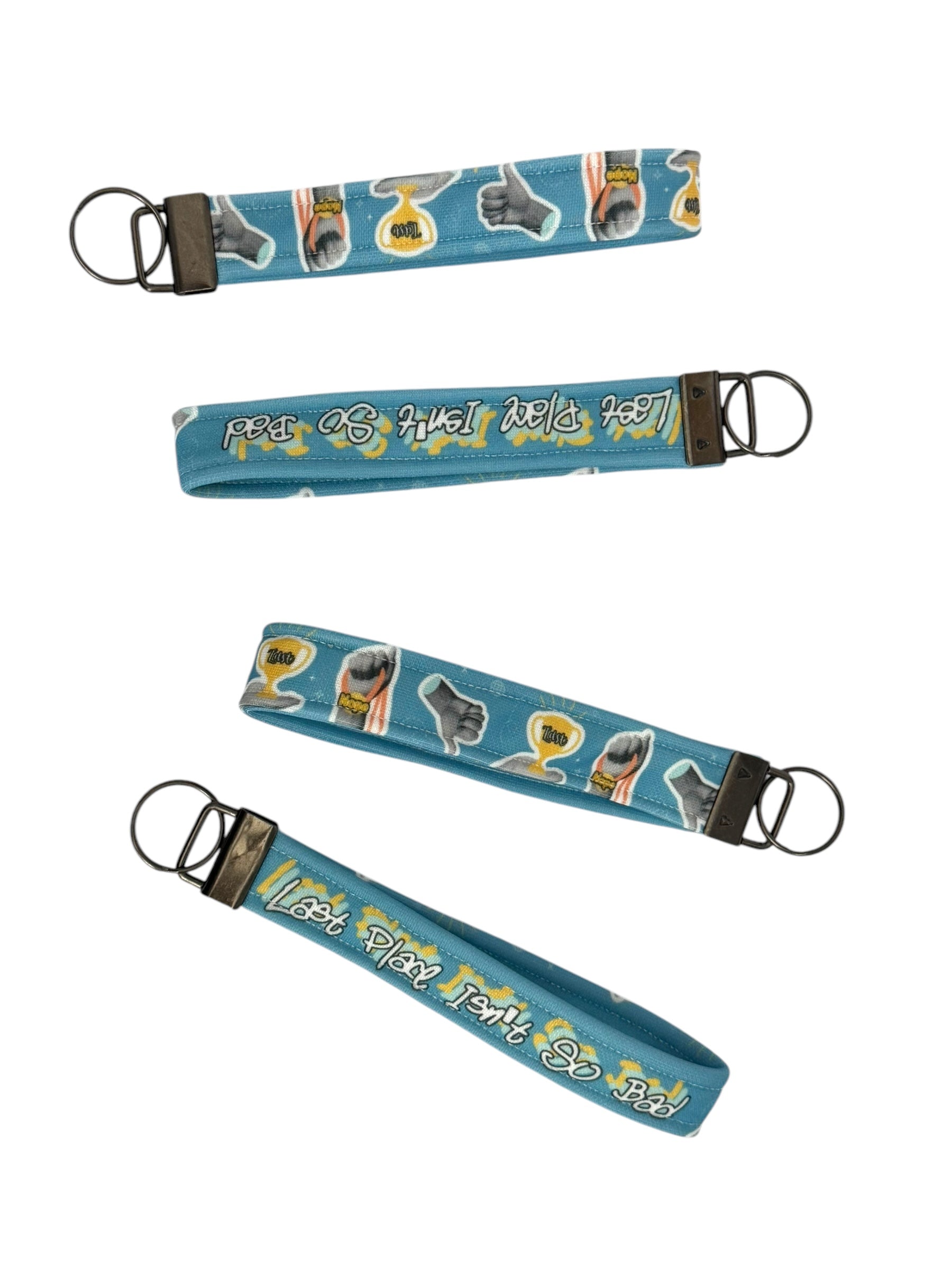 Funny “Last Place Isn’t so Bad” Wristlet Keychain – Blue Fabric Lanyard with Thumbs Graphic – Cute Gift for Teachers, Nurses, Moms, Coworkers