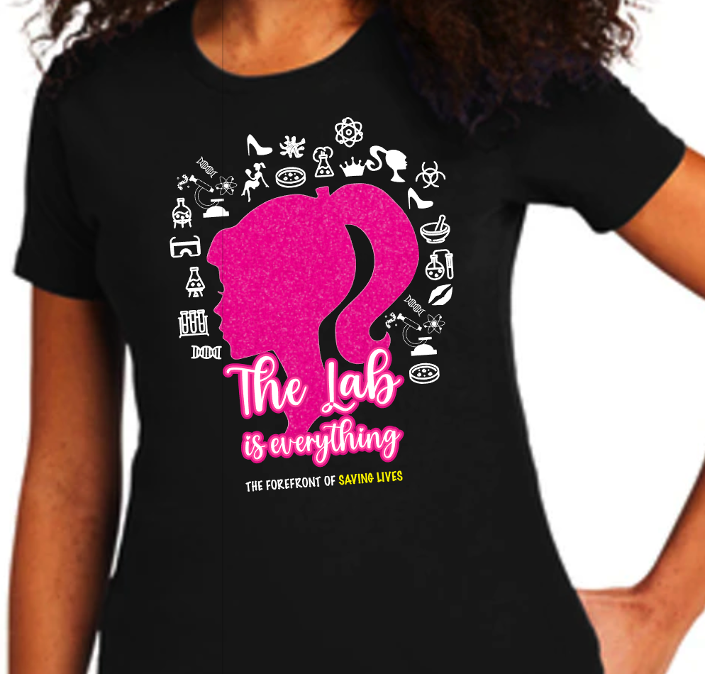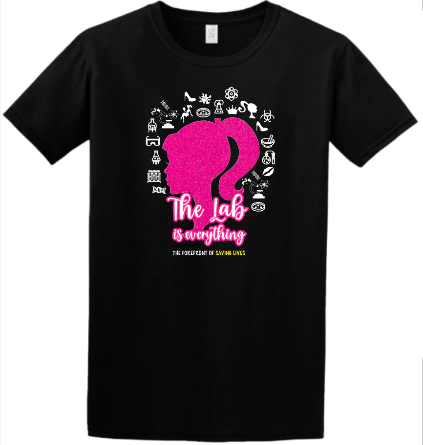 Lab Week 2024 Official Themed Apparel: Barbie Silhouette Fashion Forward T-Shirts Leading the Way in Life-Saving Style!